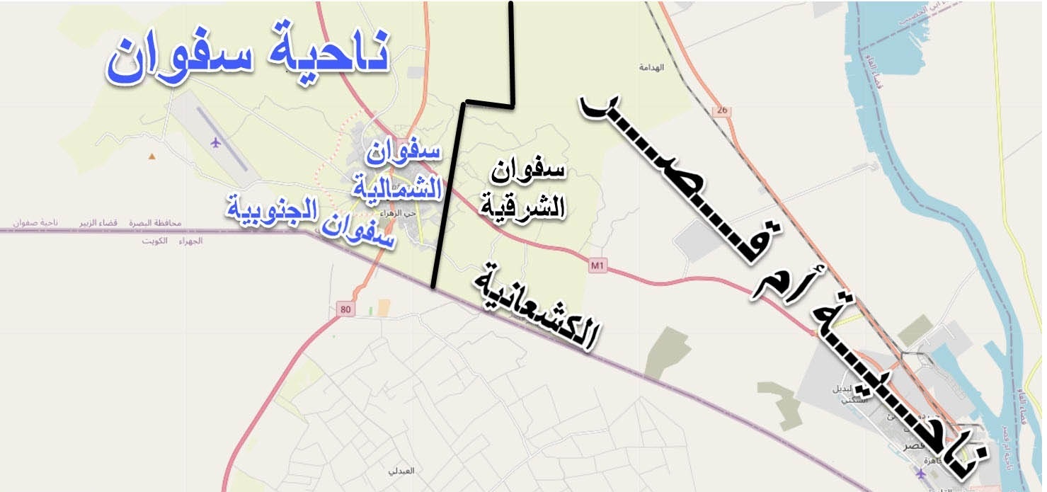فيما يلي عرض لبعض الصور التي تشمل موقع منطقة أم القصر في دولة العراق على خريطة بجودة عالية كالتالي:
